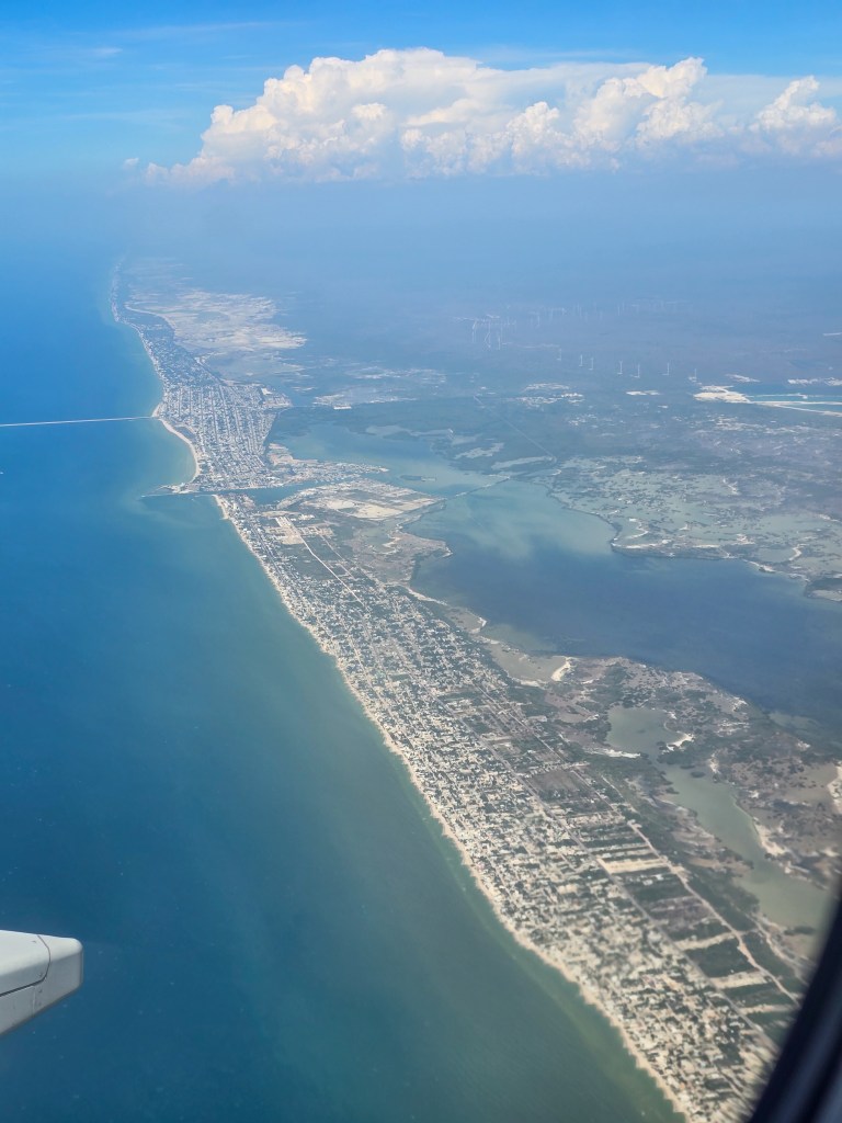 Na letisku sme odovzdali batožinu, dali si rýchlu zastávku v Subway a čakali na odlet. Let trval asi hodinu a pol. Prvýkrát v živote sa mi stalo, že som pri prestupe nemusel vystúpiť – lietadlo pristálo, väčšina ľudí vystúpila a pár nás „vyvolených“ zostalo sedieť. Po pár minútach nastúpili noví cestujúci, doplnili sme palivo a leteli sme ďalej do Méridy.