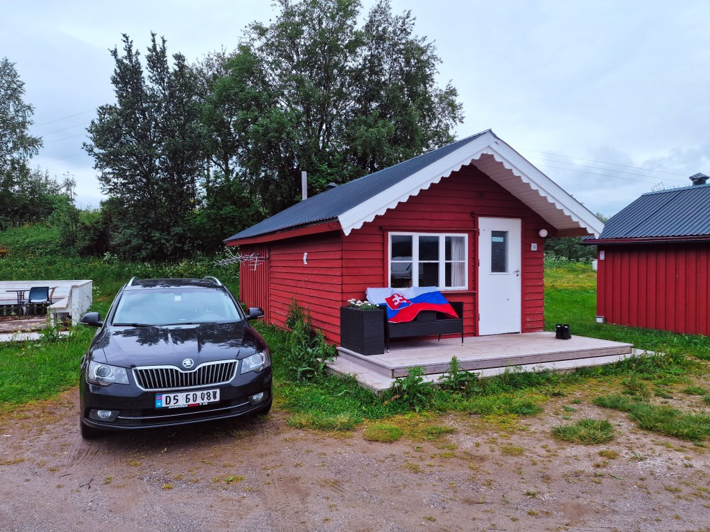 Prvú dlhšiu pauzu na noc sme si dali vo Fauske – 1 145 km od Osla. Našli sme si útulnú chatku. Teda, Dušanove booking skills sú legendárne.