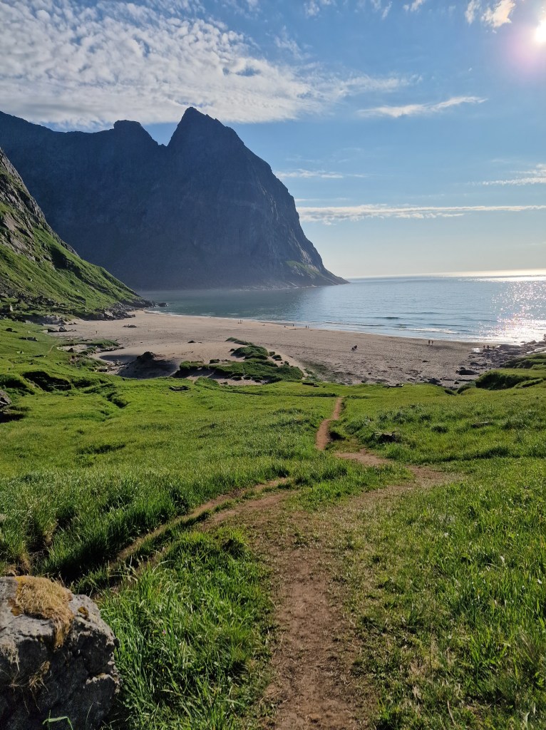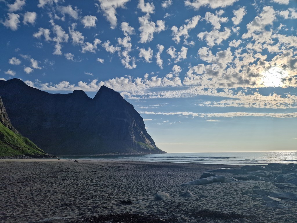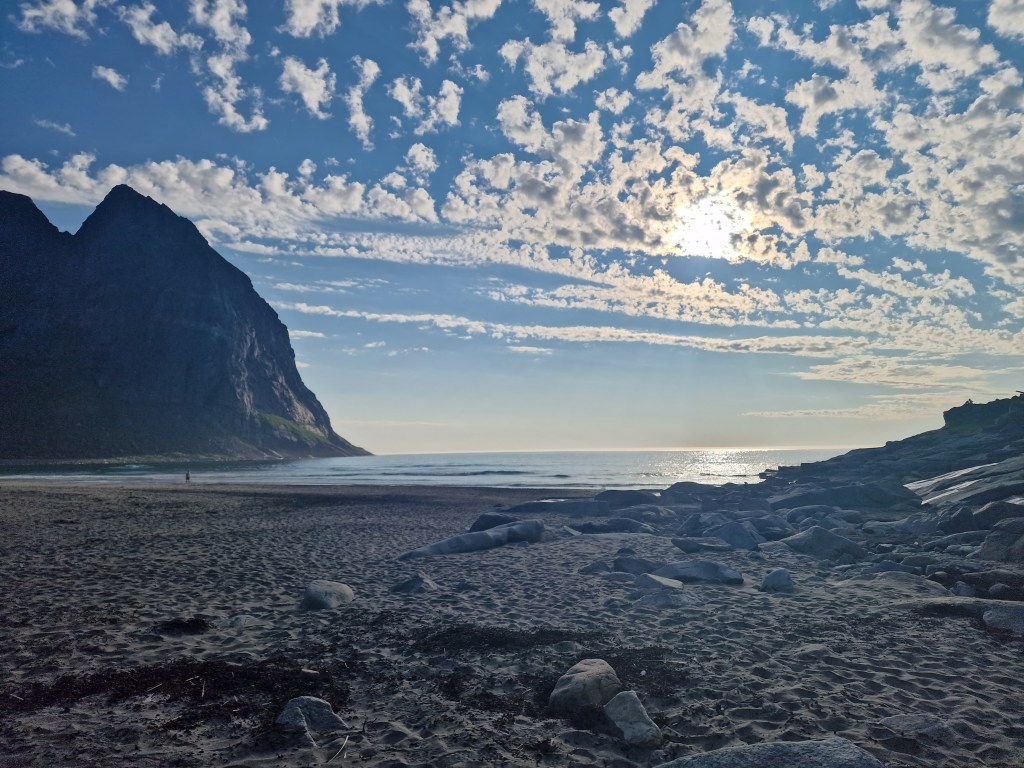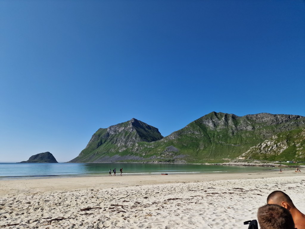 Na ďalší deň sme sa presunuli o pár stoviek kilometrov ďalej do kempu, kde sme si zložili veci. Cestou sme objavili pláž ako z Karibiku – len na severe Nórska. Okúpali sme sa, vybláznili a ja som ešte stihol poslať pohľadnicu mojim dvom láskam do Nitry. Niekto z nás (už si nepamätám kto) objavil pláž Kalvika beach. Vydali sme sa teda na ďalšie dobrodružstvo.