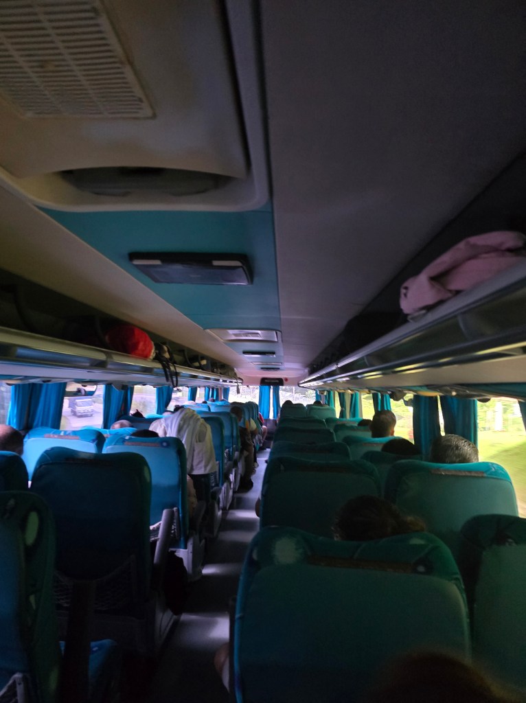 Po polhodinke čakania v aute, kým „nalovili“ ďalších pasažierov, sme sa pohli. Šofér sa ešte po ceste zastavil doma po obed, ale napokon nás vysadil neďaleko autobusovej stanice. Tam sme si chceli kúpiť niečo na cestu, no v obchode nemali nič poriadne, tak sme skončili aspoň s kokosovými cookies.